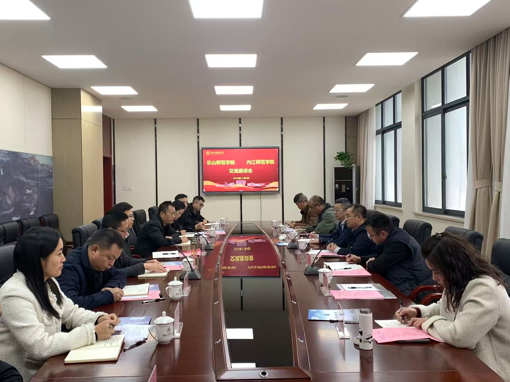 11月4日上午,调研组赴内江师范学院开展调研。调研组与该校党委常委、副院长胡金朝及相关职能部门负责人进行了深入交流。座谈会上,双方围绕国有资产管理、后勤服务、校园安全、智慧校园建设等领域校政、校企合作成果展开深入交流。座谈会后,调研组还实地参观了该校教育数字化建设与服务中心、图书馆和安防指挥平台。